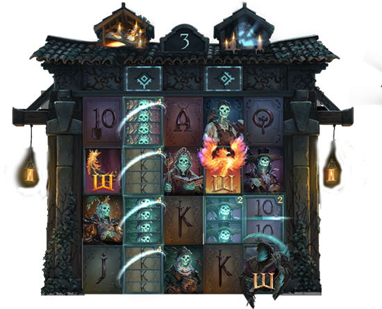 Three bonus symbols to trigger the free spin bonus game. The bonus game always starts with one Phoenix wild symbol. Triggering a Bonus during the Phoenix or the Reaper skull feature trigger the super bonus, with the feature row unlocked and all splitting effects powered up!